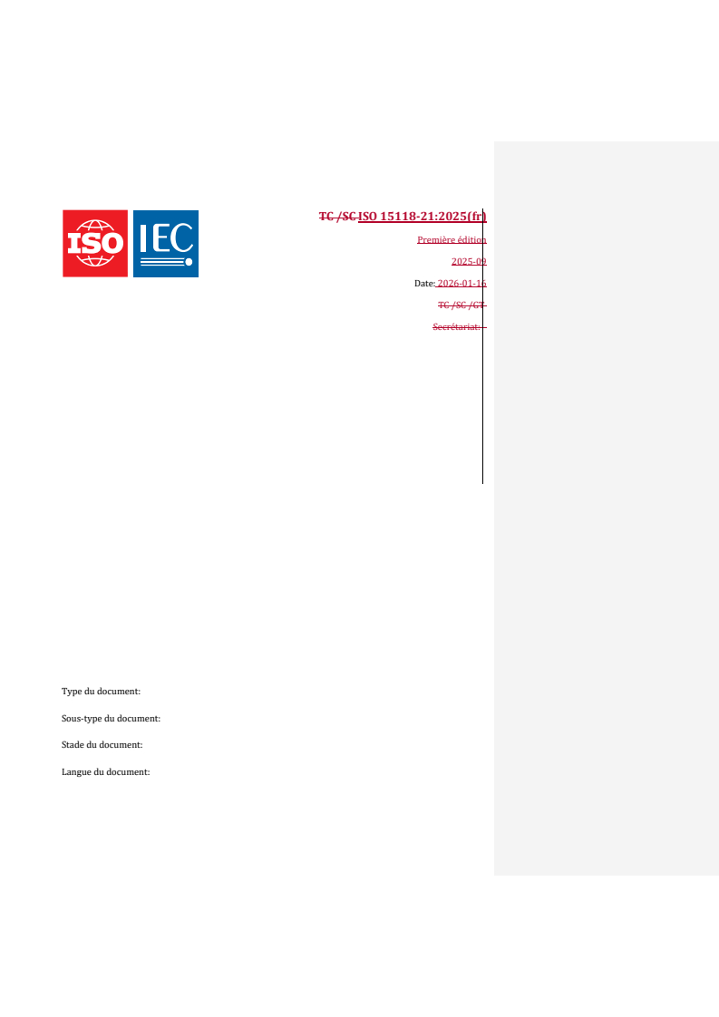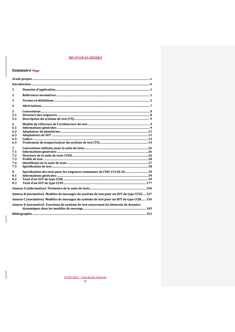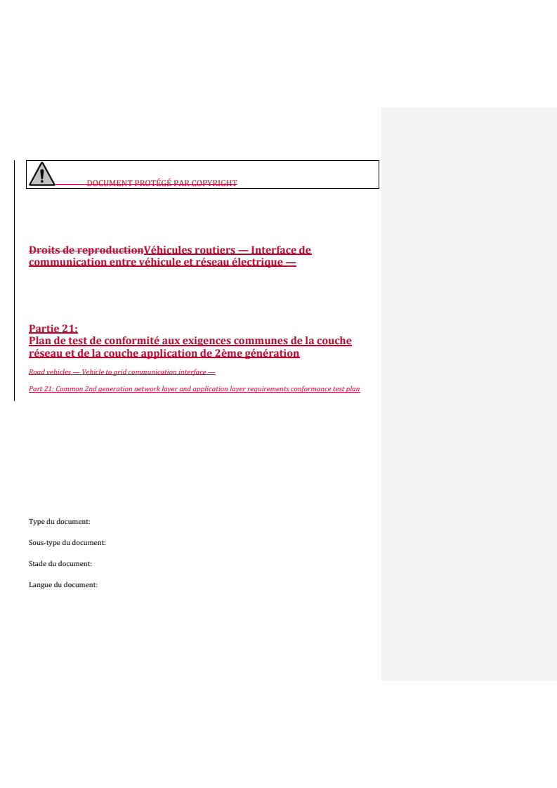 REDLINE ISO 15118-21:2025 - Véhicules routiers — Interface de communication entre véhicule et réseau électrique — Partie 21: Plan de test de conformité aux exigences communes de la couche réseau et de la couche application de 2eme génération Released:3. 02. 2026