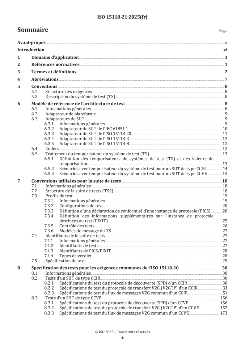 - Cross-references to IEC 61851, ISO 15118 parts (e.g., Part 3, Part 8), and external internet standards where required for conformance testing.