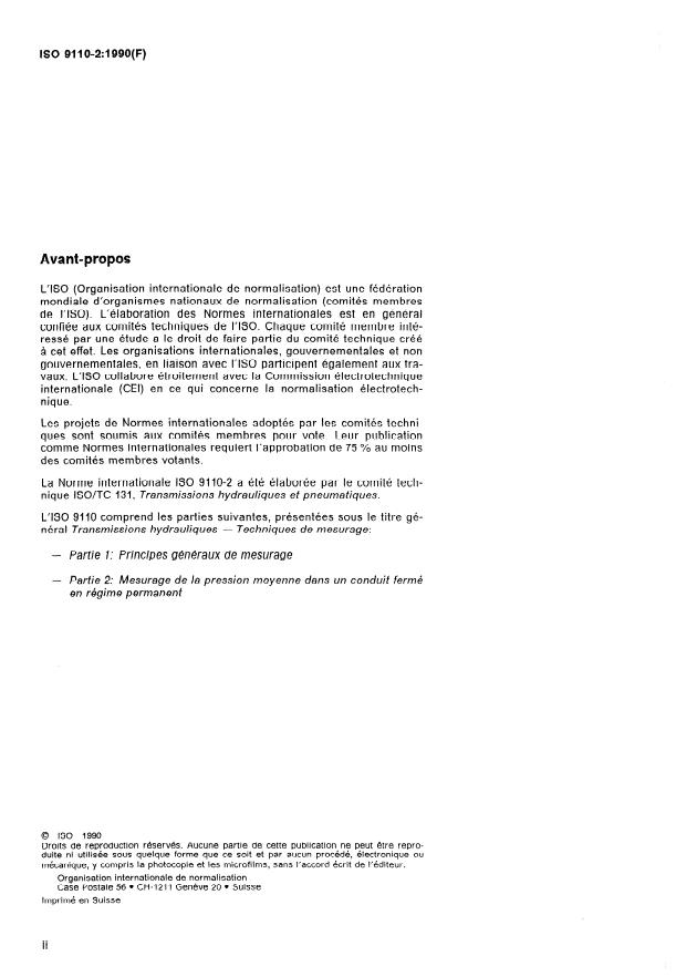 Transmissions hydrauliques — Techniques de mesurage — Partie 2: Mesurage de la pression moyenne dans un conduit fermé en régime permanent