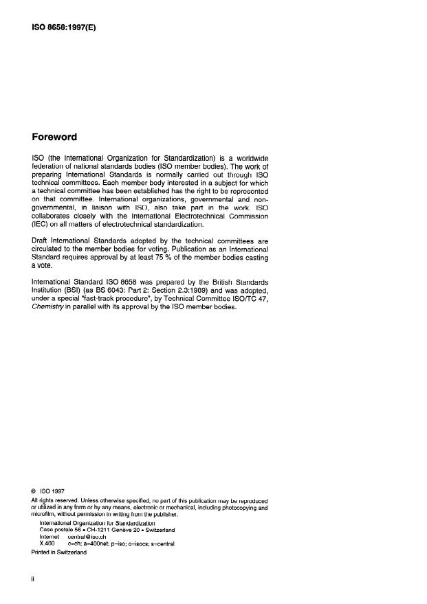 Ta slovenski standard je istoveten z: ISO 8658:1997