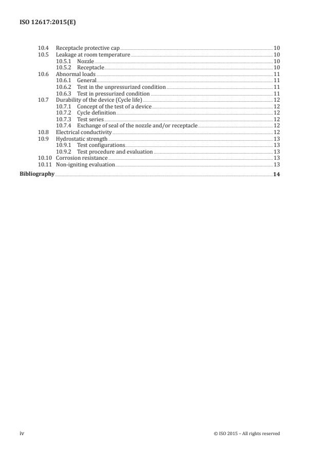 ISO 12617:2015 is a standard published by the International Organization for Standardization (ISO). Its full title is "Road vehicles - Liquefied natural gas (LNG) refuelling connector - 3,1 MPa connector". This standard covers: ISO 12617:2015 specifies liquefied natural gas (LNG) refuelling nozzles and receptacles constructed entirely of new and unused parts and materials for road vehicles powered by LNG. An LNG refuelling connector consists of, as applicable, the receptacle and its protective cap (mounted on the vehicle) and the nozzle. This International standard is applicable only to such devices designed for a maximum working pressure of 3,4 MPa (34 bar) to those using LNG as vehicle fuel and having standardized mating components. NOTE All references to pressures given in megapascals and bar (1 bar = 0,1 MPa = 105 Pa; 1 MPa = 1 N/mm2) are to be considered gauge pressures, unless otherwise specified.