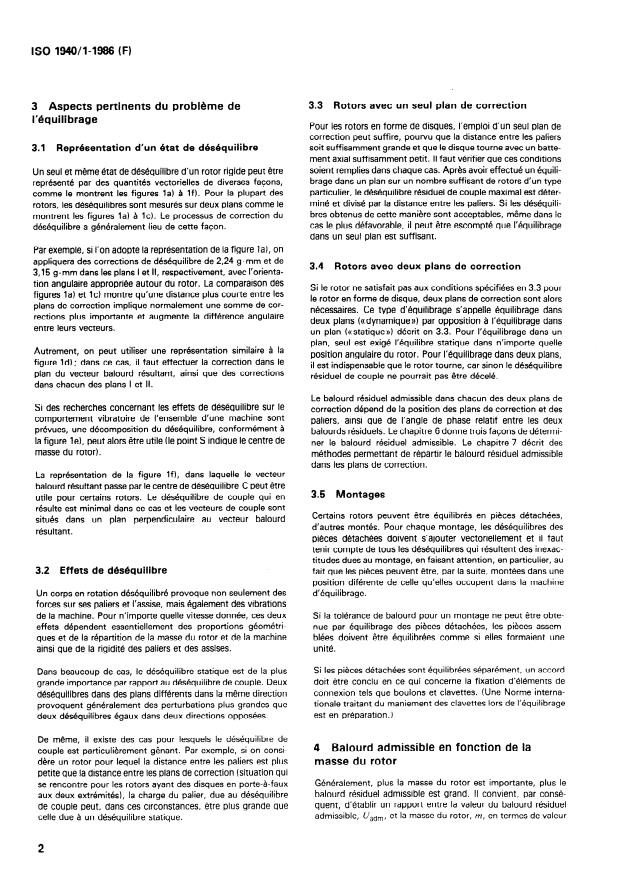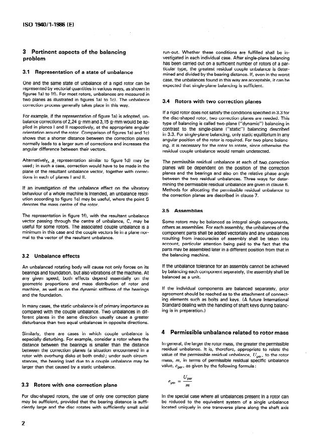 ISO 1940-1:1986 is a standard published by the International Organization for Standardization (ISO). Its full title is "Mechanical vibration — Balance quality requirements of rigid rotors — Part 1: Determination of permissible residual unbalance". This standard covers: Specifies a representation in one or two planes; methods for determining, for allocation to the correction planes; for identifying the state of a rotor by measurement; a summary of errors associated with the identification. Gives recommendations according to type, mass and maximum service speed. Is not intended to serve as acceptance specification for any rotor group.