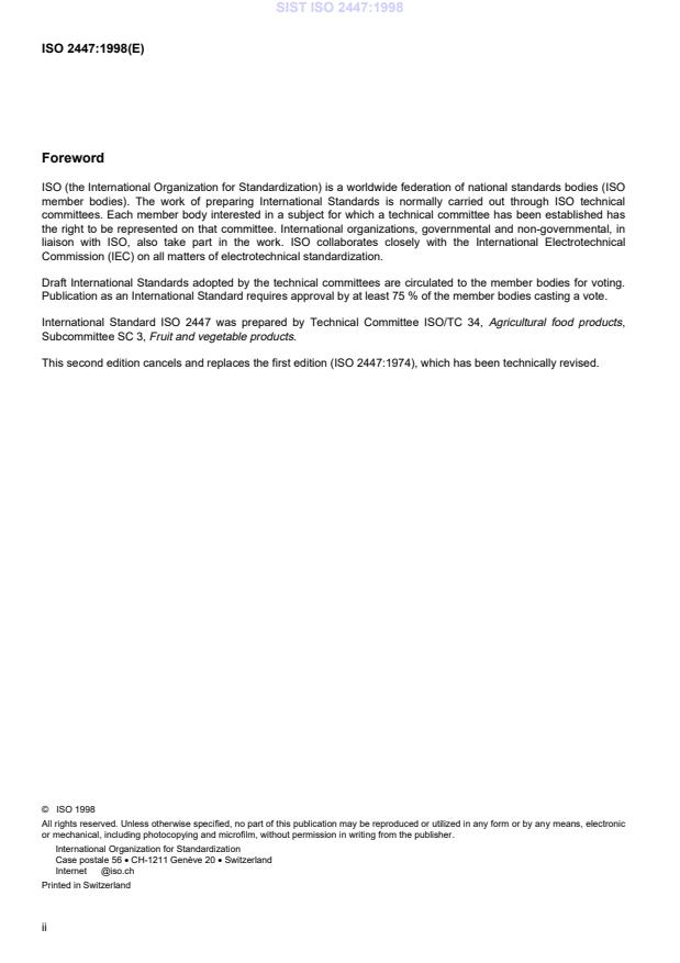 International Standard ISO 2447 was prepared by Technical Committee ISO/TC 34, Agricultural food products,
