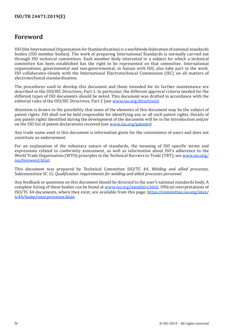 - Administrative notes - The report contains no normative references or explicit terms/definitions and was prepared by ISO/TC 44 (Welding and allied processes), SC 11.