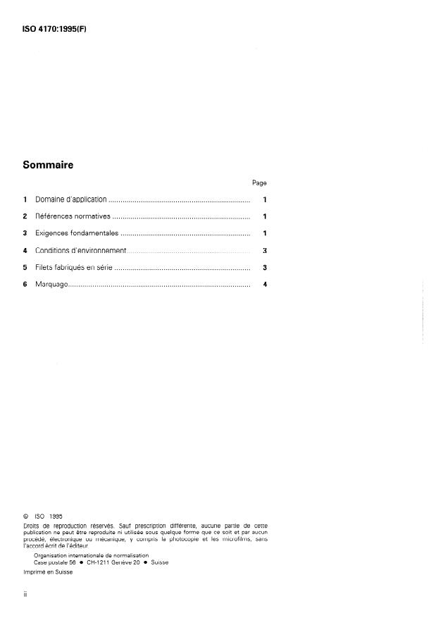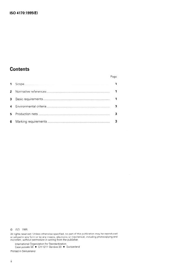 ISO 4170:1995 is a standard published by the International Organization for Standardization (ISO). Its full title is "Air cargo equipment — Interline pallet nets". This standard covers: Specifies dimensional, structural and environmental requirements for nets used to secure cargo on aircraft pallets meeting the requirements of ISO 4117 or ISO 4171. Establishes six basic sizes of pallet nets.