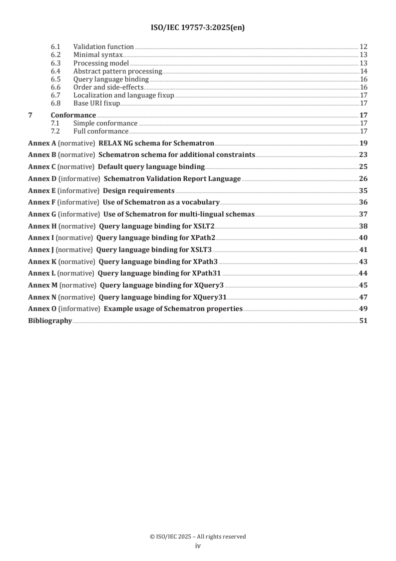 - Keywords: ISO/IEC 19757-3, Schematron, DSDL, XML validation, rule-based validation, XPath, XSLT, XQuery, SVRL, query language binding, conformance.