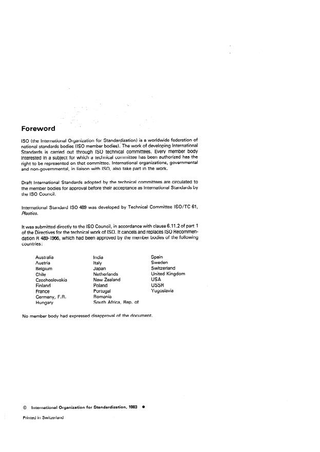 International Standard IS0 489 was developed by Technical Committee ISO/TC 61,