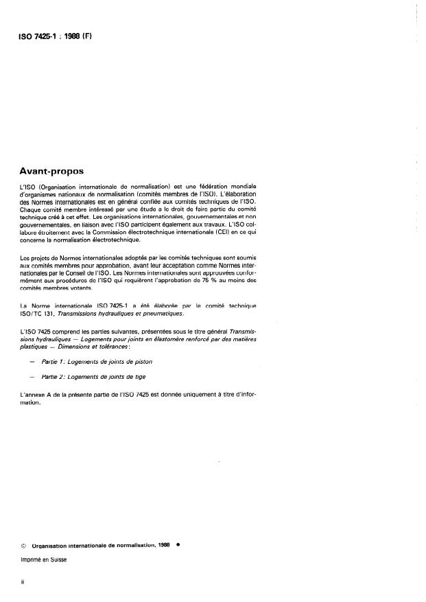 ISO 7425-1:1988 - Transmissions hydrauliques -- Logements pour joints en élastomere renforcé par des matieres plastiques