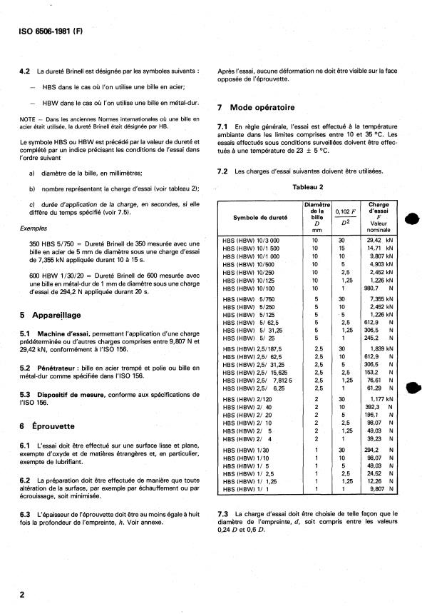 4.2 La dureté Brinell est désignée par les symboles suivants : Après l'essai, aucune déformation ne doit être visible sur la face