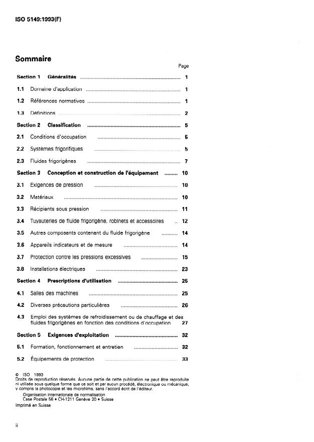 ISO 5149:1993 is a standard published by the International Organization for Standardization (ISO). Its full title is "Mechanical refrigerating systems used for cooling and heating — Safety requirements". This standard covers: Specifies the requirements relating to the safety of persons and property for the design, construction, installation and operation of refrigerating systems. Gives a classification of the refrigerating systems. Applies to all types of refrigerating systems in which the refrigerant is evaporated and condensed in a closed circuit, including heat pumps and absorption systems, except for systems using water or air as the refrigerant. Is applicable to new refrigerating systems, extensions and modifications of already existing systems, and for used systems.