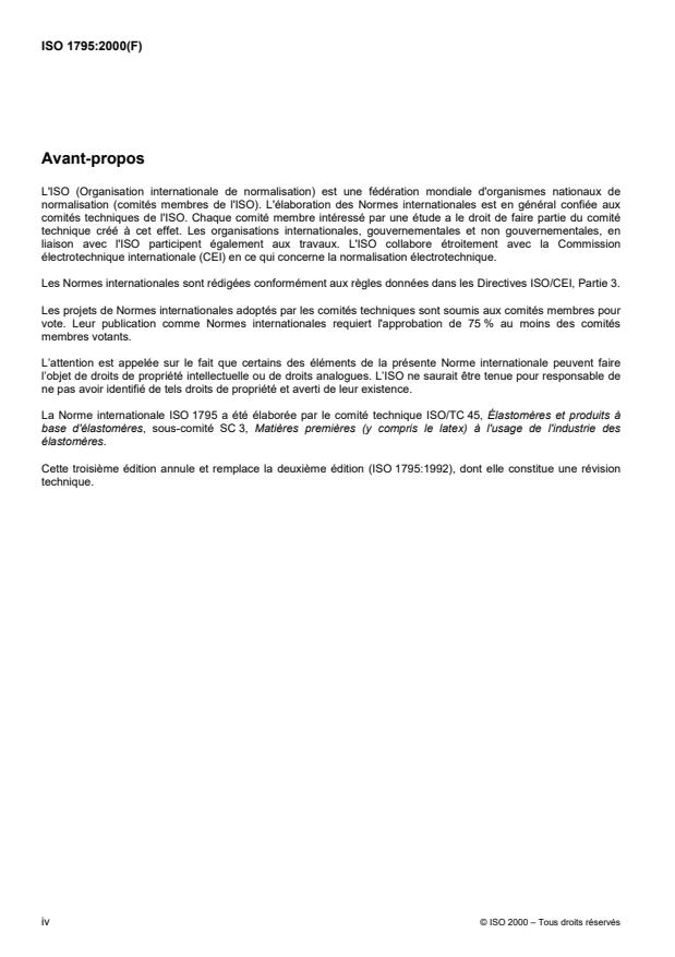 La Norme internationale ISO 1795 a étéélaborée par le comité technique ISO/TC 45, Élastomères et produits à
