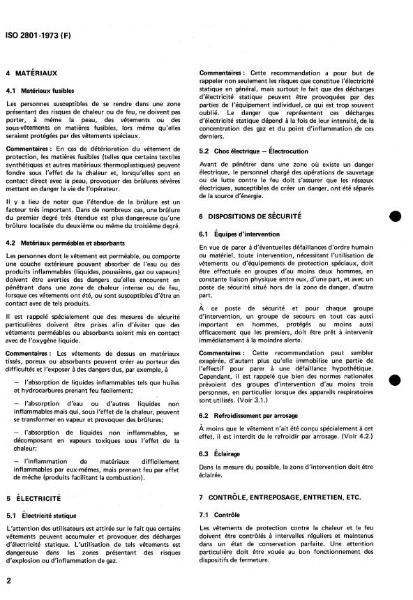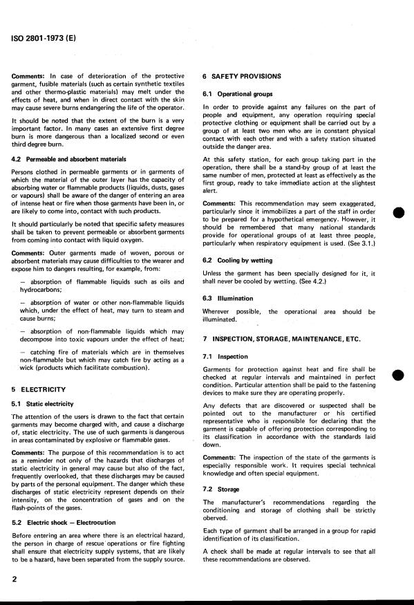 ISO 2801:1973 is a standard published by the International Organization for Standardization (ISO). Its full title is "Clothing for protection against heat and fire — General recommendations for users and for those in charge of such users". This standard covers: Clothing for protection against heat and fire — General recommendations for users and for those in charge of such users