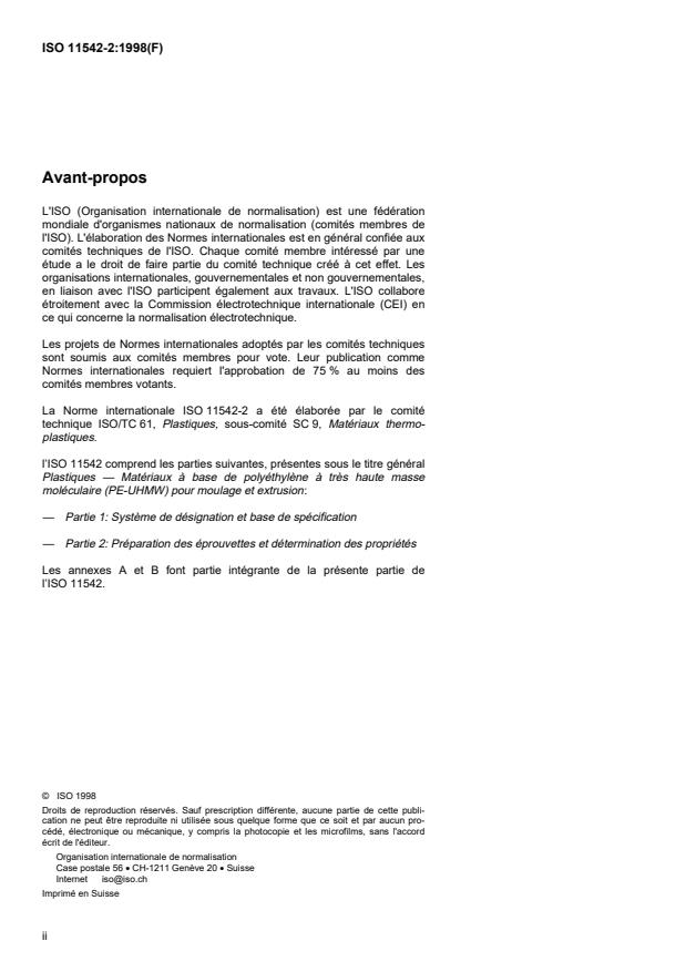 ISO 11542-2:1998 - Plastiques -- Matériaux a base de polyéthylene a tres haute masse moléculaire (PE-UHMW) pour moulage et extrusion