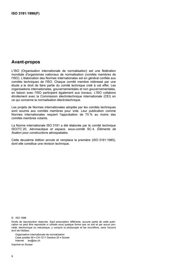 By aligning with these standards, ISO 3191:1998 ensures compatibility and consistency across various aerospace components and fasteners, facilitating quality control, interoperability, and safety in the aerospace sector.