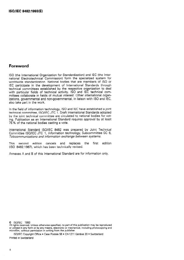 International Standard lSO/IEC 8482 was prepared by Joint Technical