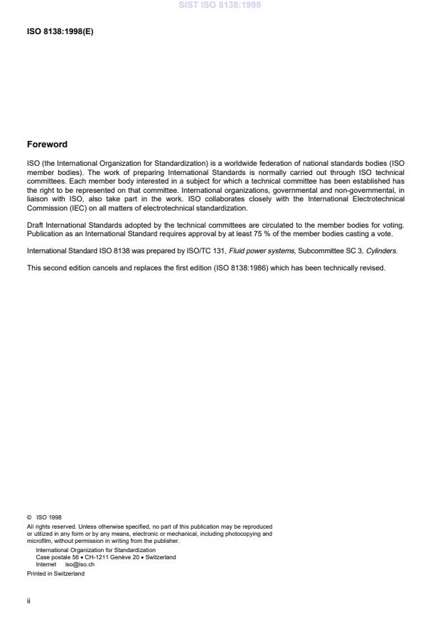 International Standard ISO 8138 was prepared by ISO/TC 131, Fluid power systems, Subcommittee SC 3, Cylinders.