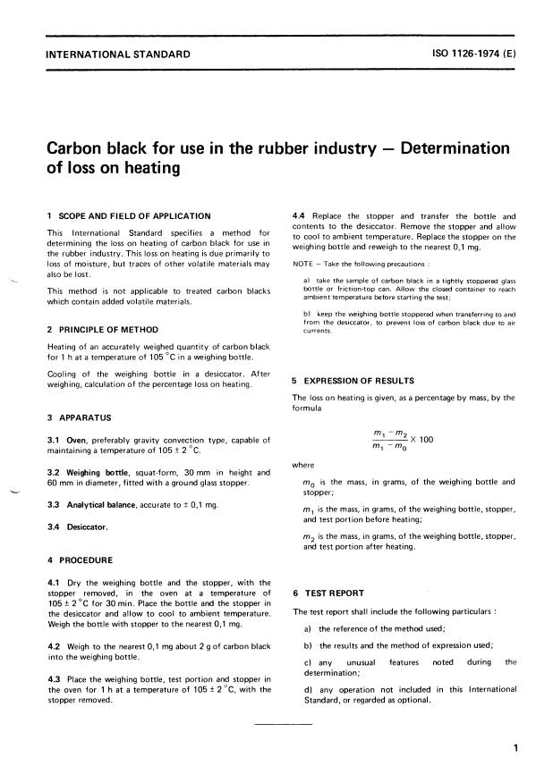 ISO 1126:1974 - Carbon black for use in the rubber industry -- Determination of loss on heating