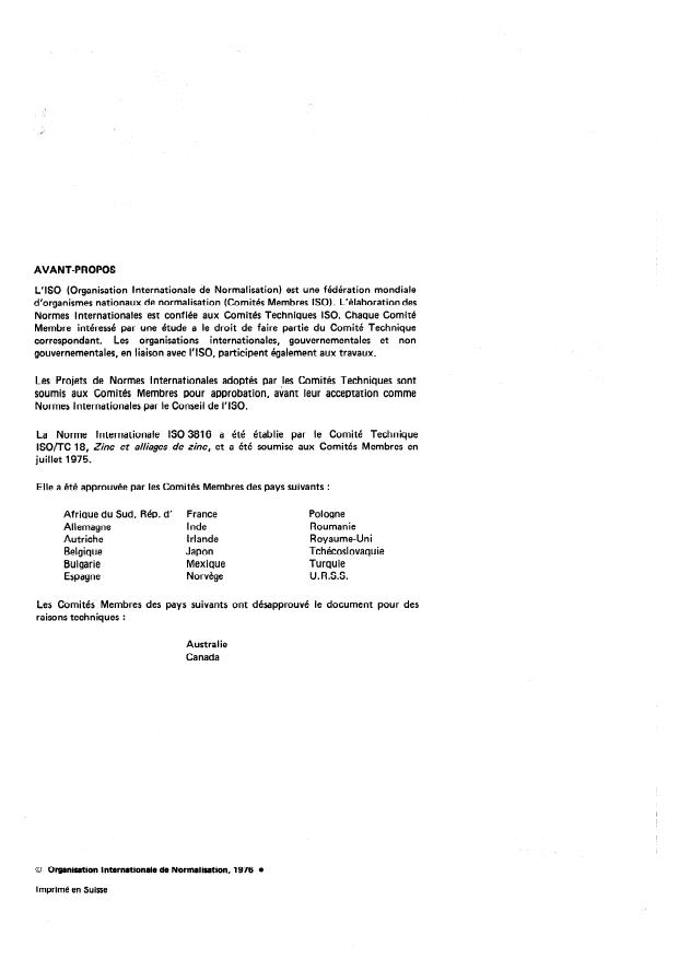 ISO/TC 18, Zinc and zinc a//oys, and was circulated to the Member Bodies in