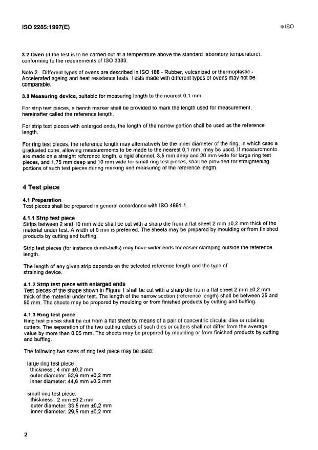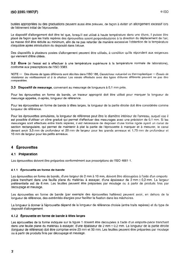 ISO 2285:1997 - Caoutchouc vulcanisé ou thermoplastique -- Détermination de la déformation rémanente apres allongement aux températures normales et élevées