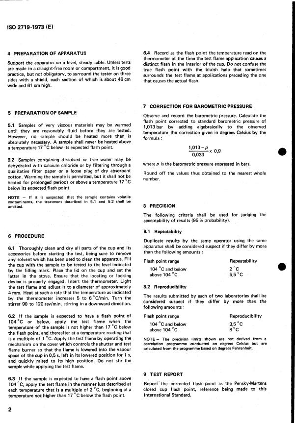 ISO 2719:1973 - Petroleum products — Determination of flash point — Pensky-Martens closed cup method Released:9/1/1973