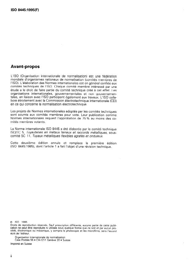 ISO 8445:1995 - Pipework -- Double overlap flexible metal hoses (with packing, leakproof, circular section, in protected carbon steel)