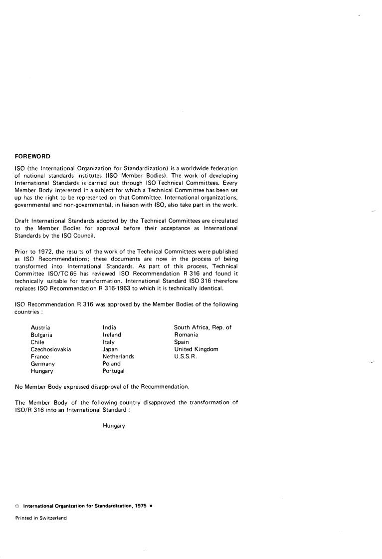 IS0 Recommendation R 316 was approved by the Member Bodies of the following