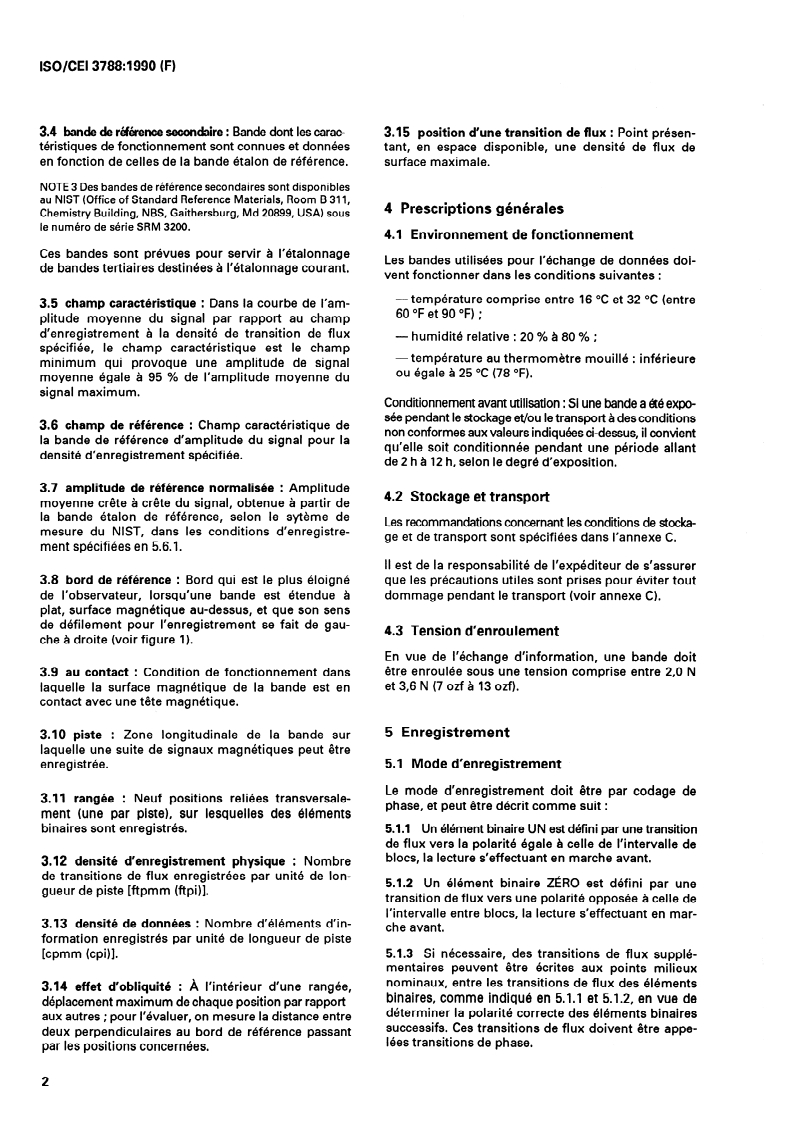 ISO/IEC 3788:1990 defines a tape format and recording standard for 9‑track, 12.7 mm (0.5 in) wide magnetic tape intended for information interchange. It specifies the physical layout, recording method (Phase encoding), nominal recording density (126 ftpmm / 3200 ftpi, with reference use at 63 ftpmm / 1600 ftpi), signal amplitude limits, erasure practice and mechanical/operating conditions to ensure reliable data interchange between information‑processing and communication systems.