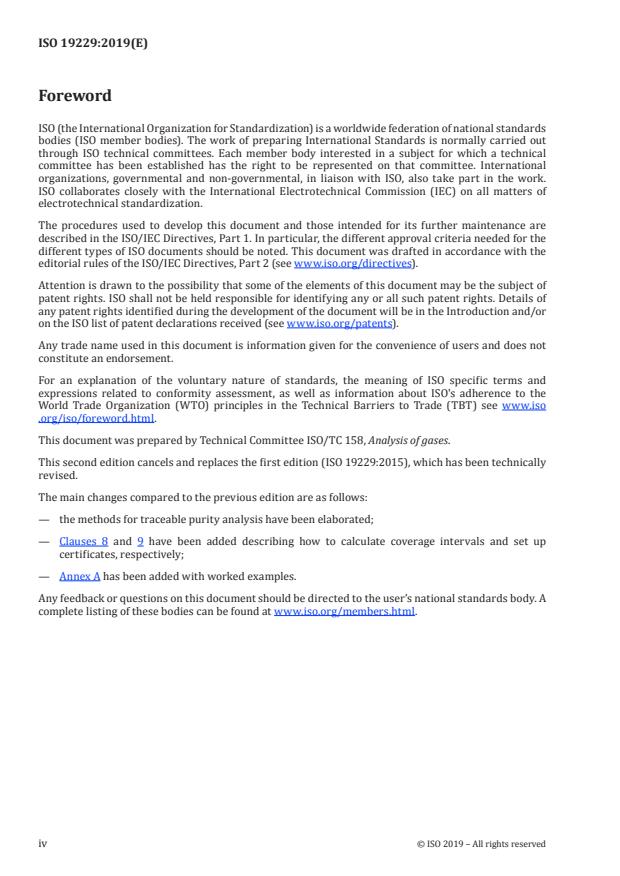 ISO 19229:2019 is a standard published by the International Organization for Standardization (ISO). Its full title is "Gas analysis — Purity analysis and the treatment of purity data". This standard covers: This document establishes the requirements for the purity analysis of materials used in the preparation of calibration gas mixtures and the use of these purity data in calculating the composition of the mixture thus prepared.