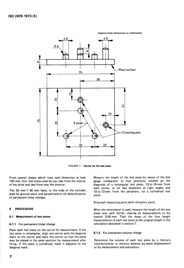 ISO 2478:1973 - Dense shaped refractory products -- Determination of the permanent changes in dimensions on heating