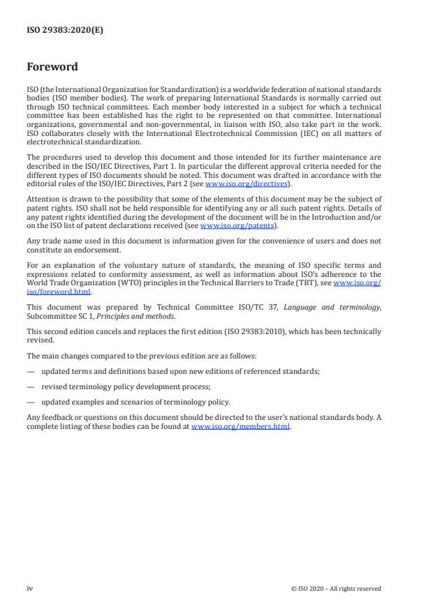 Keywords: ISO 29383:2020, terminology policies, terminology planning, terminology management, terminology policy implementation, terminological data collection, terminology management system, language planning.