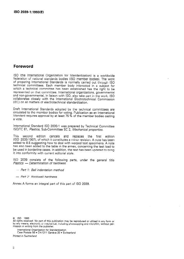 ISO 2039-1:1993 - Plastics -- Determination of hardness