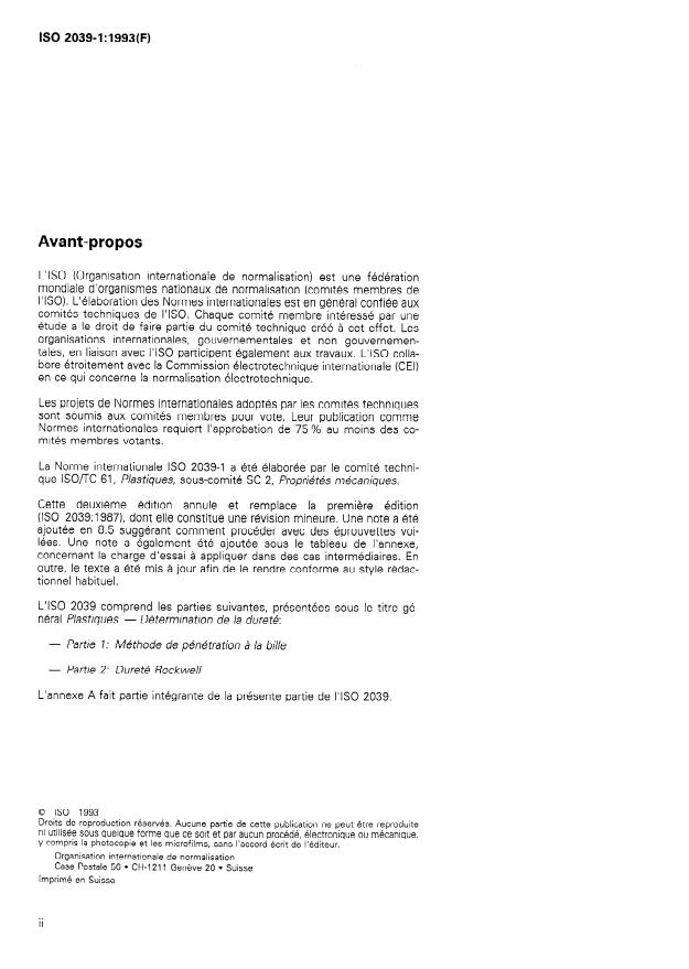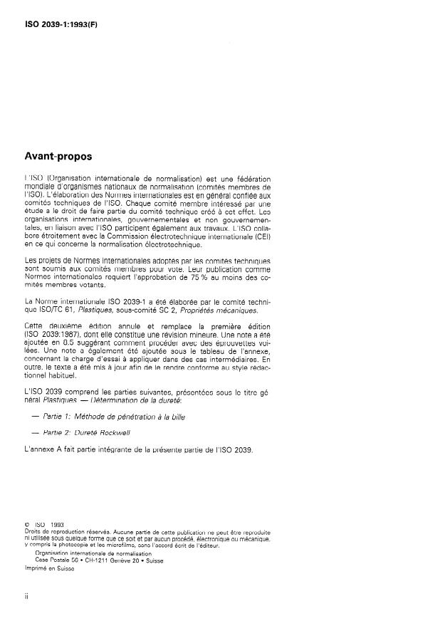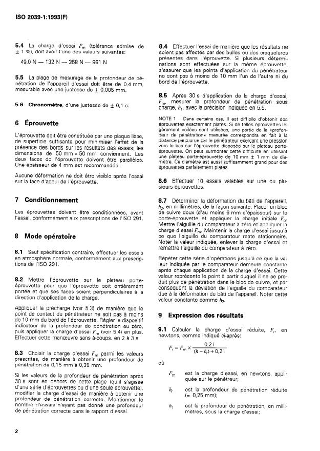 La présente partie de I’ISO 2039 prescrit une mé- La méthode consiste à faire pénétrer une bille sous