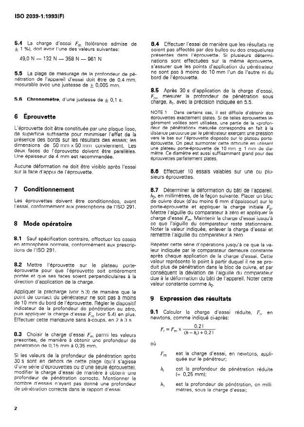 5.4 La charge d’essai F, (tolérance admise de 8.4 Effectuer l’essai de manière que les résultats ne
