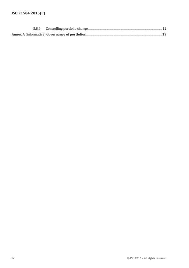 ISO 21504:2015 provides guidance on the principles of project and programme portfolio management. ISO 21504:2015 is relevant to any type of organization including public or private and any size organization or sector. The guidance presented in ISO 21504:2015 is intended to be adapted to suit the specific environment of the project and programme portfolio. ISO 21504:2015 does not provide guidance on project management, programme management, or general business portfolio management (e.g. financial portfolio management).