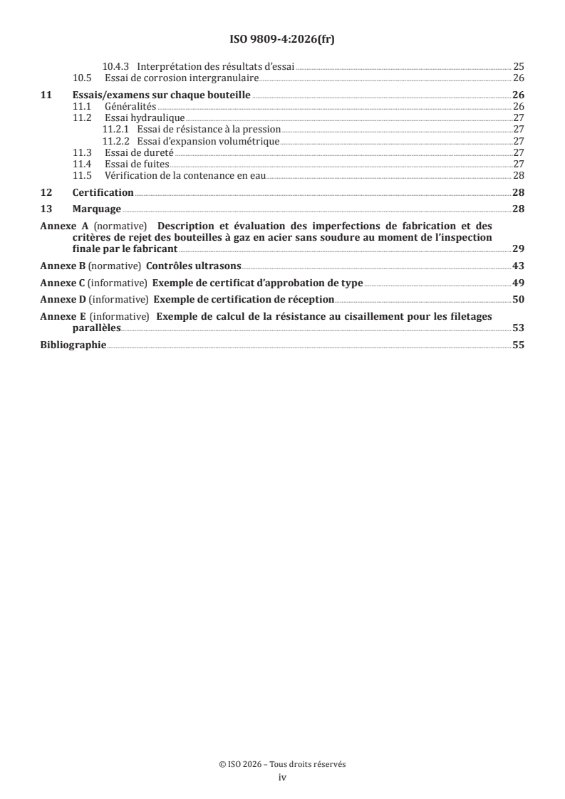 ISO 9809-4:2026 - Bouteilles à gaz — Conception, construction et essais des bouteilles à gaz et des tubes rechargeables en acier sans soudure — Partie 4: Bouteilles en acier inoxydable ayant une valeur de Rm inférieure à 1 100 MPa
