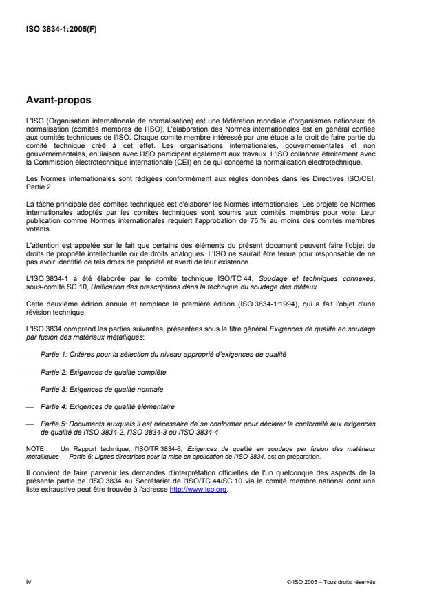 Cette deuxième édition annule et remplace la première édition (ISO 3834-1:1994), qui a fait l'objet d'une