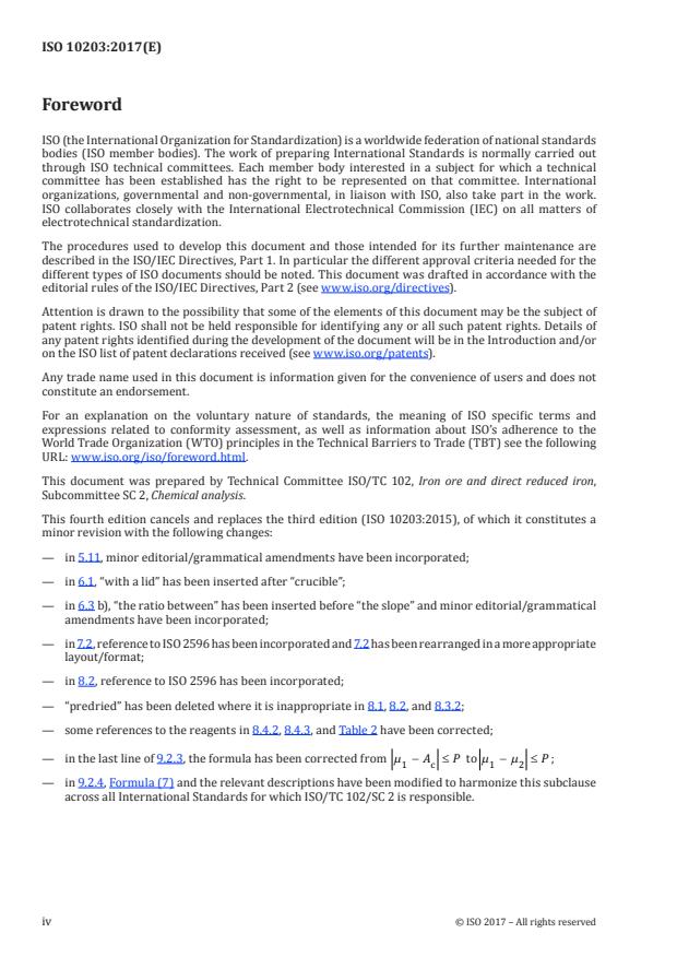 ISO 10203:2017 is a standard published by the International Organization for Standardization (ISO). Its full title is "Iron ores — Determination of calcium — Flame atomic absorption spectrometric method". This standard covers: ISO 10203:2017 specifies a flame atomic absorption spectrometric method for the determination of the mass fraction of calcium in iron ores. This method is applicable to mass fractions of calcium between 0,010 % and 8,00 % in natural iron ores, iron ore concentrates, and agglomerates, including sinter products.