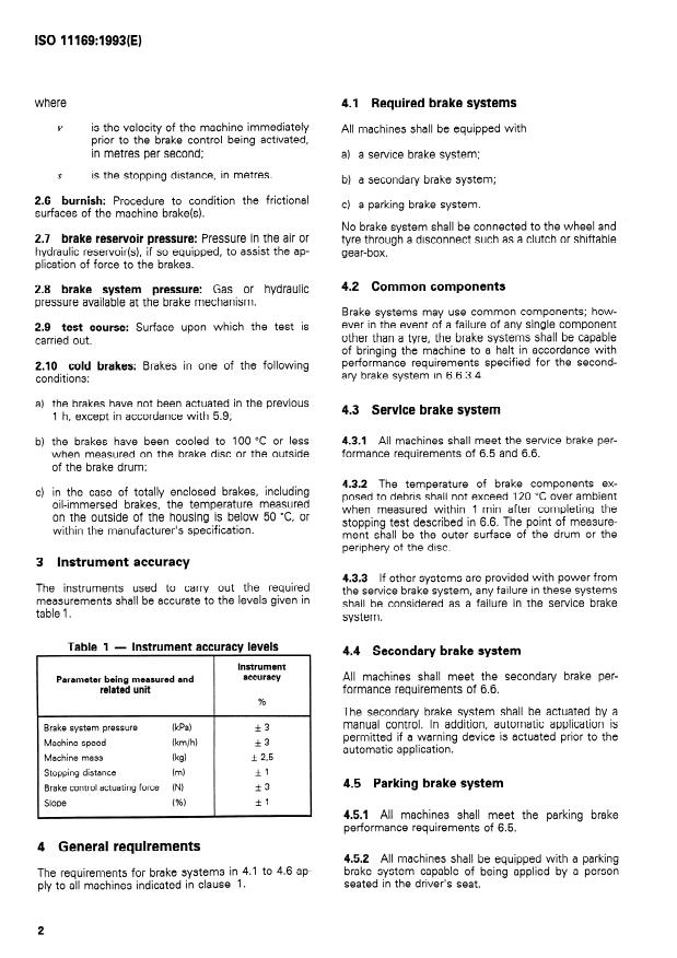 Keywords: ISO 11169, brake systems, forestry machinery, wheeled special machines, stopping distance, parking brake, service brake, secondary brake, performance test methods.