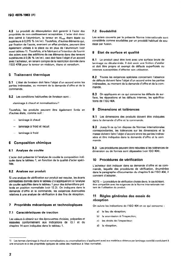 Les aciers couverts par la présente Norme internationale sont