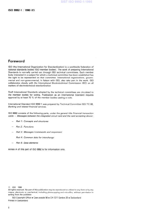 ISO 9992-1:1990 - Financial transaction cards -- Messages between the integrated circuit card and the card accepting device