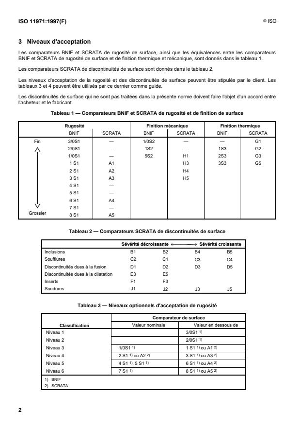 1.2 Les niveaux d'acceptation se réfèrent aux comparateurs de référence du Bureau de Normalisation des