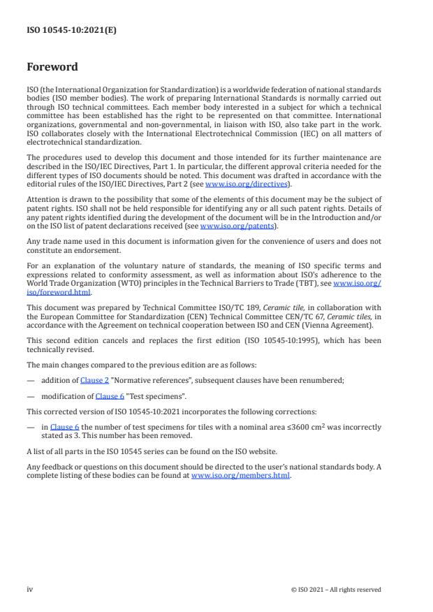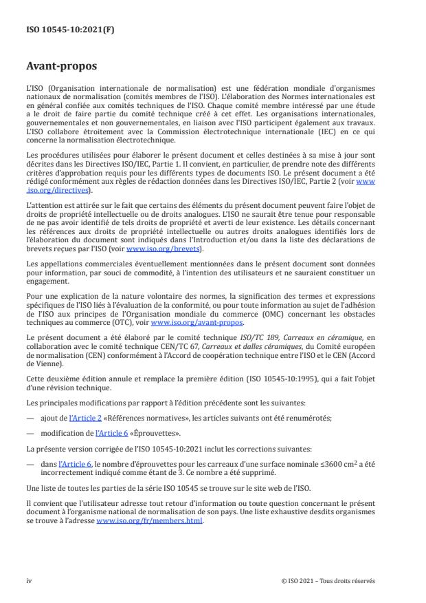 Cette deuxième édition annule et remplace la première édition (ISO 10545-10:1995), qui a fait l’objet