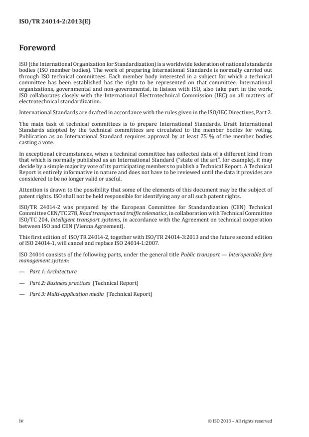Keywords: ISO/TR 24014-2:2013, Interoperable Fare Management System, IFMS, Set of Rules, public transport interoperability, fare management business practices, three-dimensional model, migration paths.