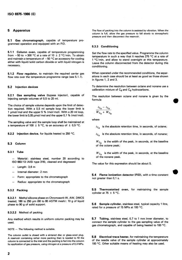 3 If used in conjunction with IS0 6974, the results for C, to CE are column with a thermal conductivity and a flame ionization detector in