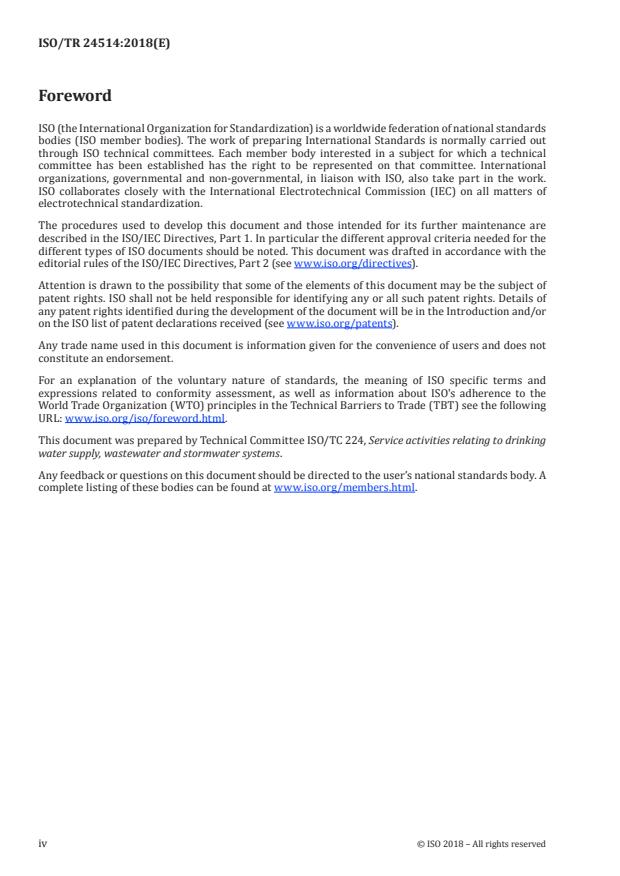 Keywords: ISO/TR 24514:2018, performance indicators, water utilities, benchmarking, ISO 24510, ISO 24511, ISO 24512, drinking water, wastewater services, performance assessment.