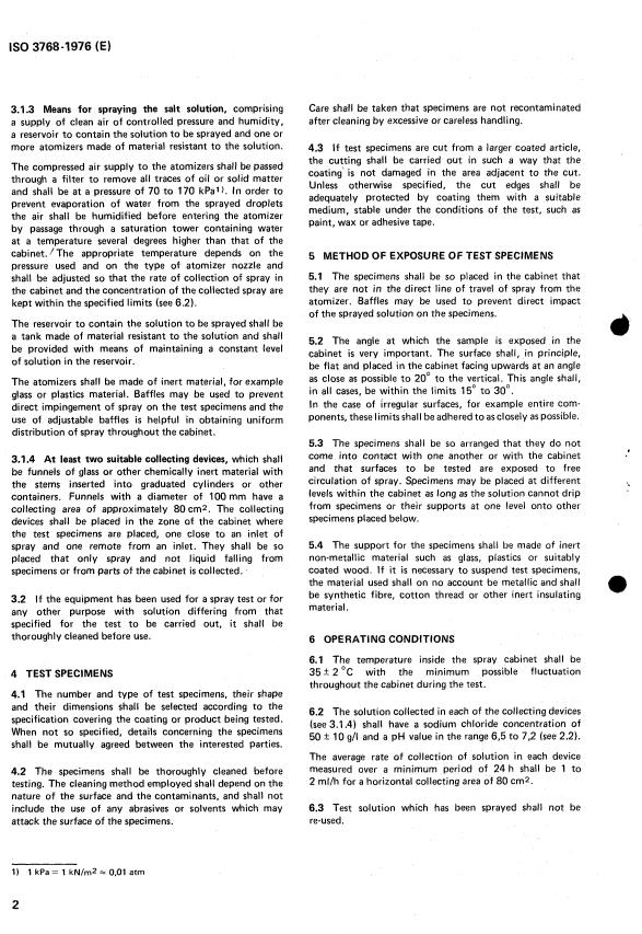 ISO 3768:1976 is a standard published by the International Organization for Standardization (ISO). Its full title is "Metallic coatings — Neutral salt spray test (NSS test)". This standard covers: Metallic coatings — Neutral salt spray test (NSS test)