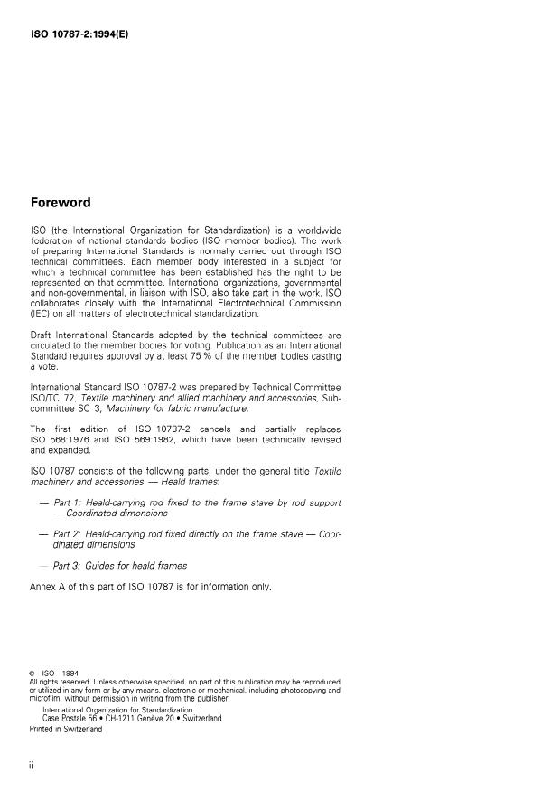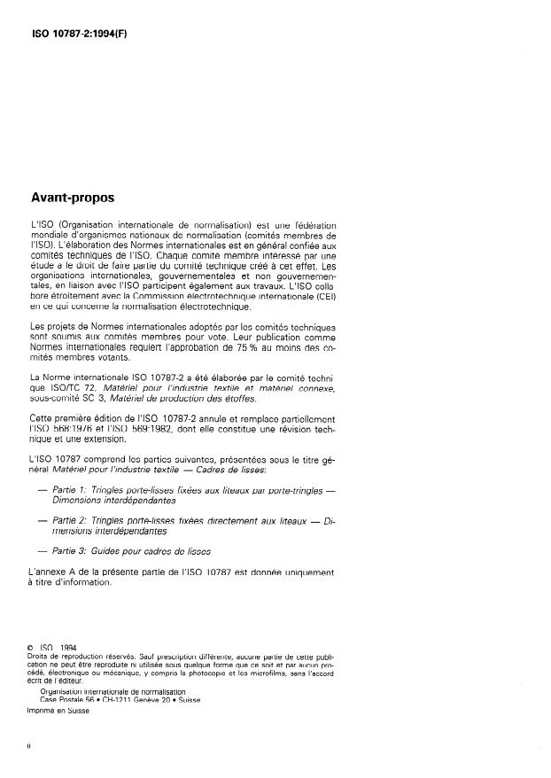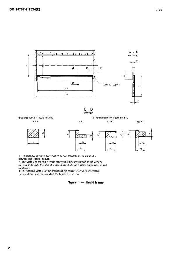 Keywords: ISO 10787-2:1994, heald frames, heald-carrying rod, frame stave, coordinated dimensions, textile machinery, harness pitch, heald frame connections.