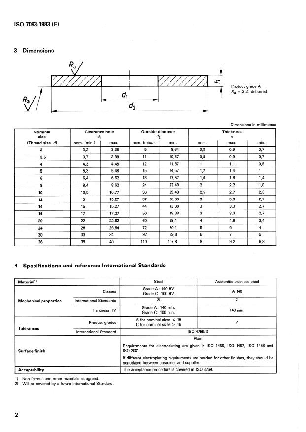 This International Standard lays down the specification for plain washers of product grades A and C with outside diameter three times