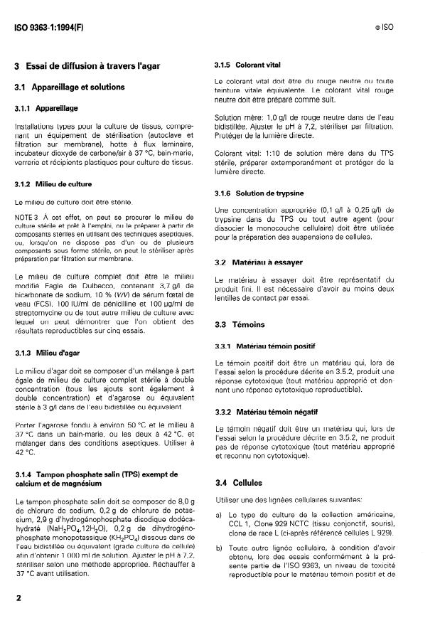 ISO 9363-1:1994 - Optique et instruments d'optique -- Lentilles de contact -- Détermination de la cytotoxicité des matériaux des lentilles de contact