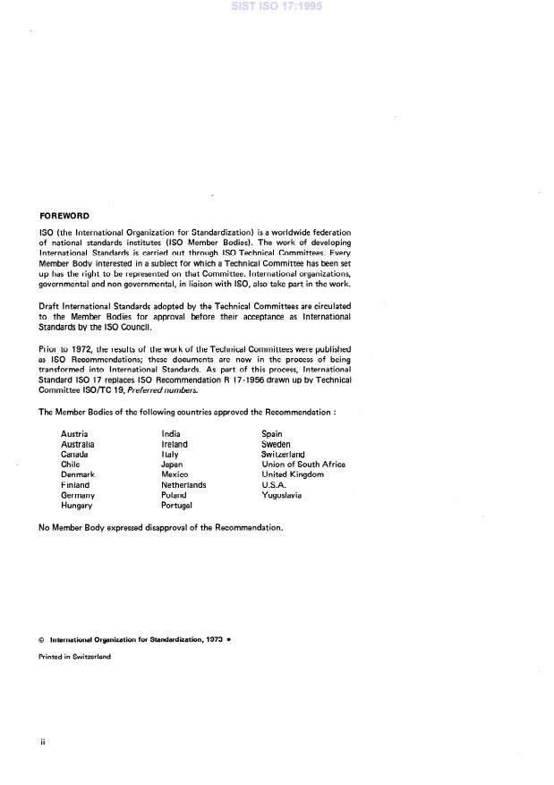 Standard IS0 17 replaces IS0 Recommendation R 17-1956 drawn up by Technical